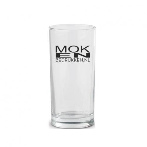 Dit drinkglas bedrukken we standaard met een 1 kleur UV High Gloss bedrukking dit is een mooie glanzende opdruk